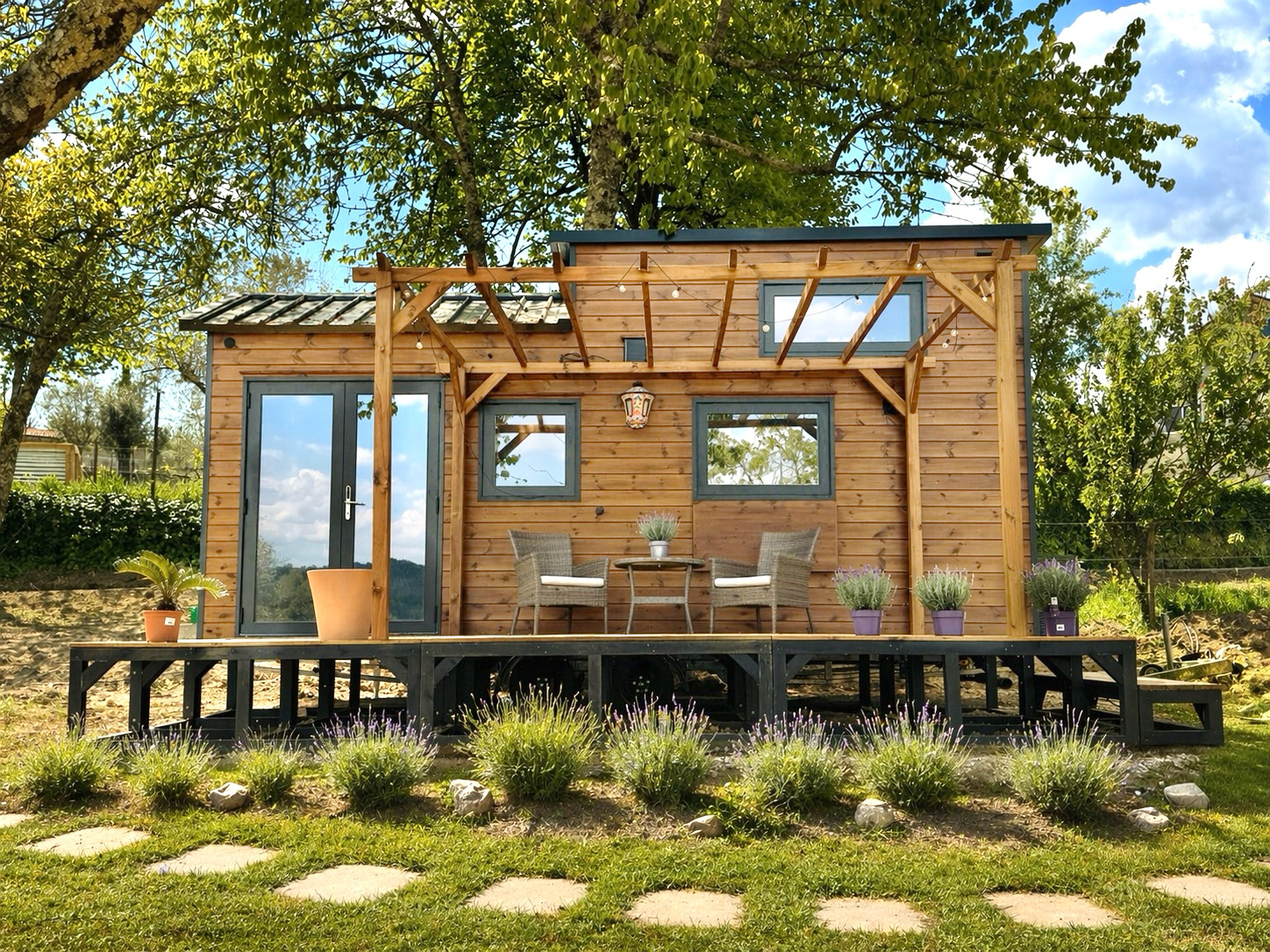 • Große Terrasse mit Tisch, Sitzgelegenheiten und Überdachung