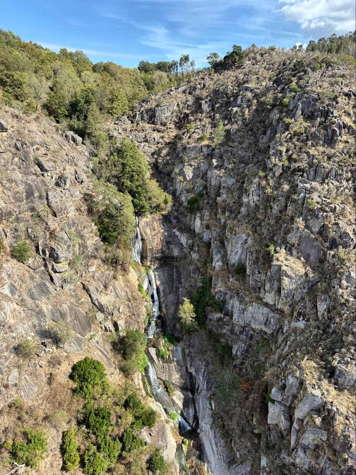 À mi-chemin, arrêtez-vous et regardez en bas. Vous verrez la rivière Paiva serpenter dans la gorge, avec des cascades qui serpentent le long de ses flancs. L'air bourdonne de bruits - le vent, les oiseaux, le bruit de l'eau en contrebas. C'est à couper le souffle dans tous les sens du terme.