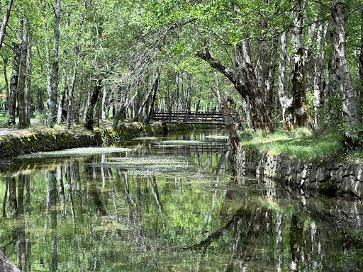 Mesmo à saída da sinuosa N338, um pequeno sinal leva-nos ao Covão d'Ametade - uma depressão tranquila onde o rio Zêzere começa a sua vida. Pontes de madeira atravessam um ribeiro límpido sob uma copa de bétulas, com os seus reflexos a ondularem nos baixios.