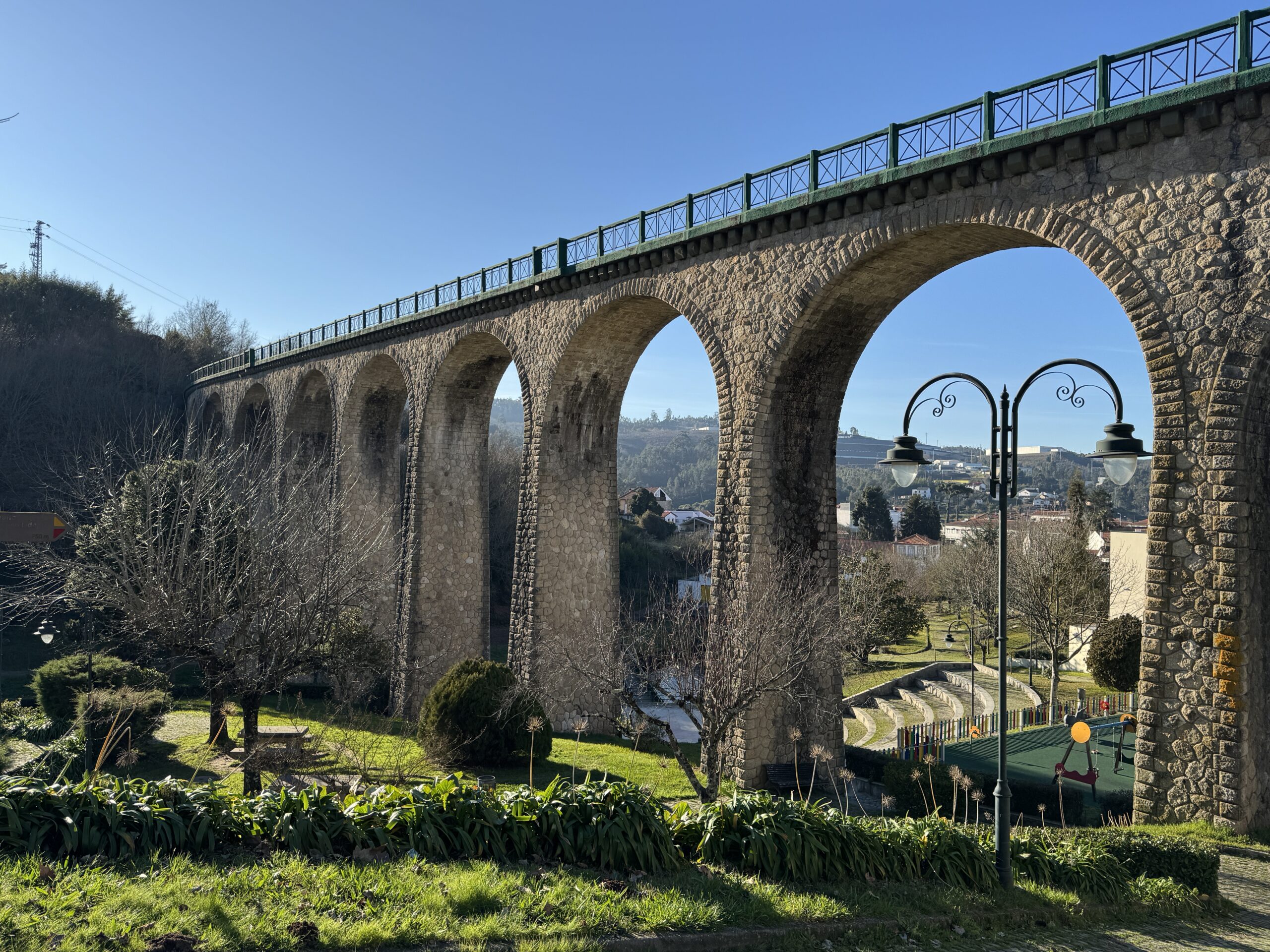 Pause midway if you can. The view down the valley and back along the arches is unforgettable – Vouzela perched in the distance, the Lafões hills rolling beyond.
