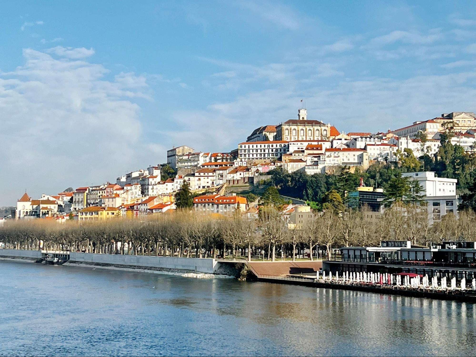 You will likely park near the river so it’s a good place to start your adventure. Begin by crossing the footbridge Ponte Pedro e Inês. It offers sweeping vistas of Coimbra’s terraced rooftops climbing the hill, mirrored in the Mondego. The play of light, colors, and the river make for a charming panorama.